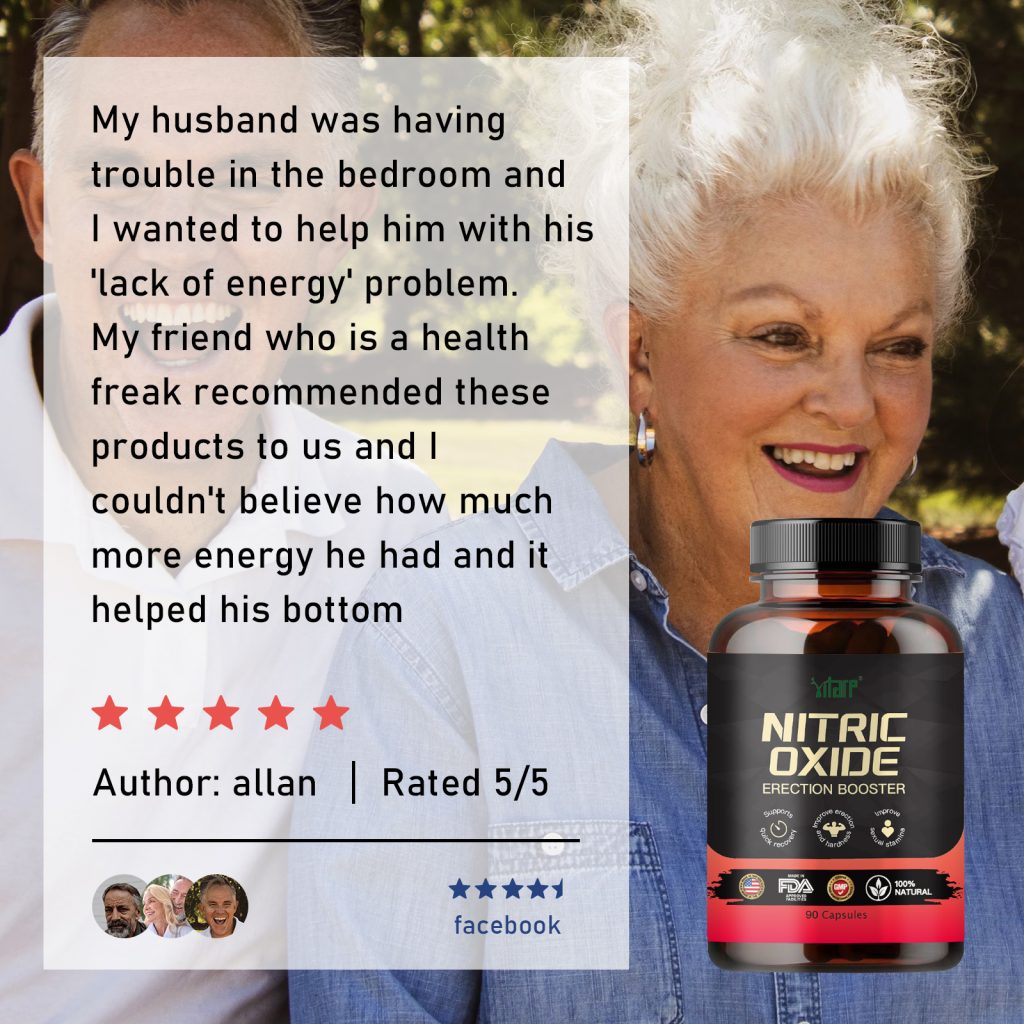 I used to less than 5 minutes, but now I am more than 20 minutes, and it can be continued for the second and third time. After using nitric oxide erection enhancer for half a month, condition of the penis is not inferior to that of a 20-year-old! My wife said that I was like a different person, and now she is chasing me for it. I have recommended it to my brothers to use together! "